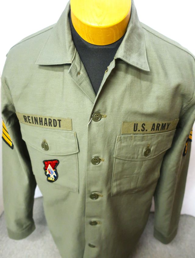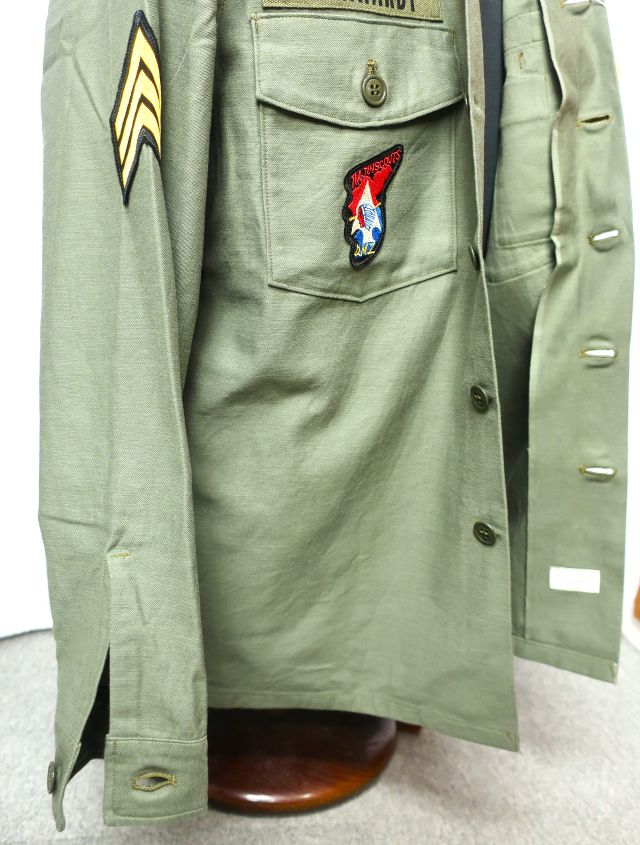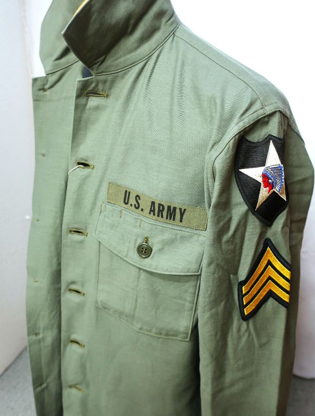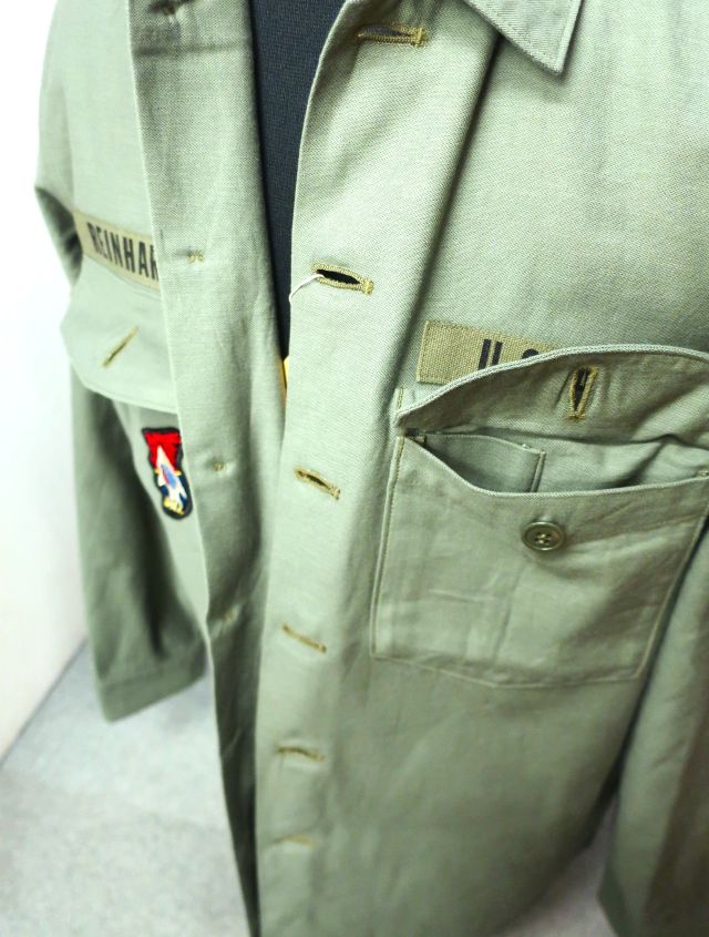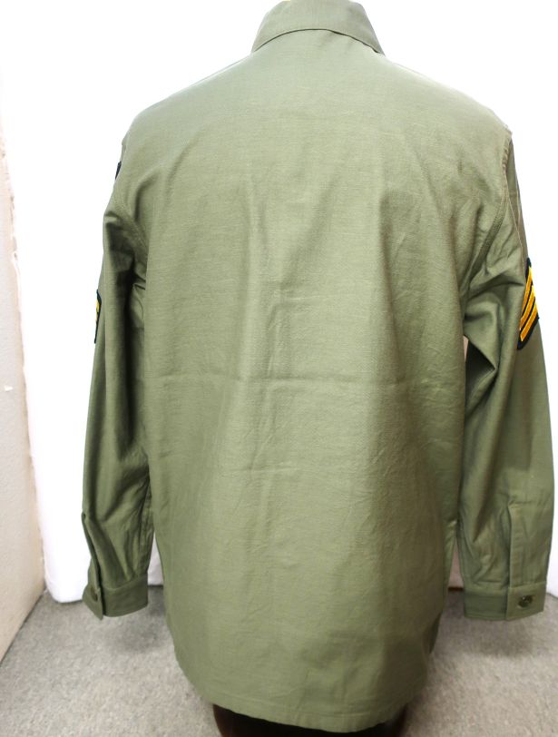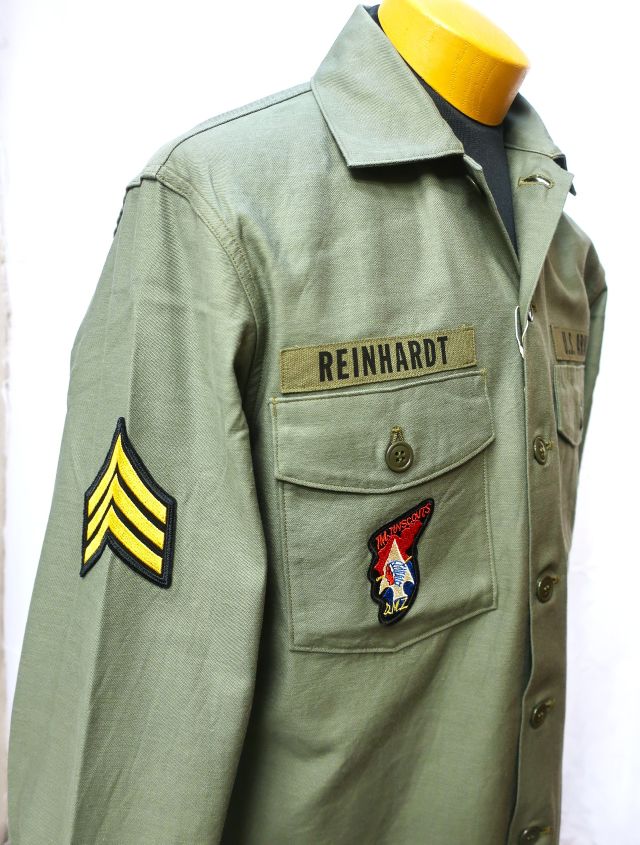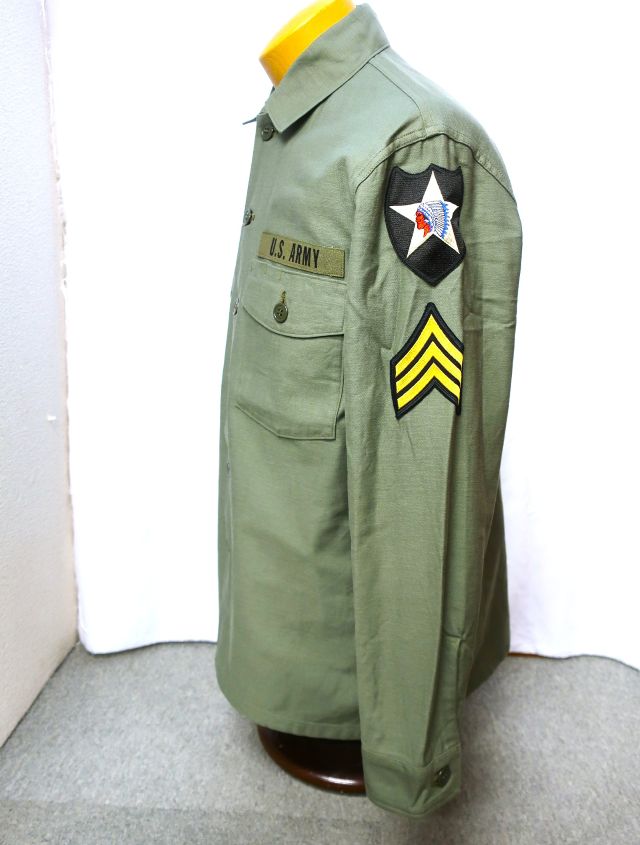 DEMILITARIZED ZONE SHIRT,MAN’S COTTON SATEEN OLIVE GREEN SHADE 107 【 品番 】 BR29586 【 色 】 D.M.Z. 【 サイズ 】 15 【 素材 】 綿 100% 【 本体価格 】 28000円 サイズ目安(cm) ※ 多少誤差あり 【 15 】 肩幅:46 身幅:58 着丈:74 袖丈:62.5