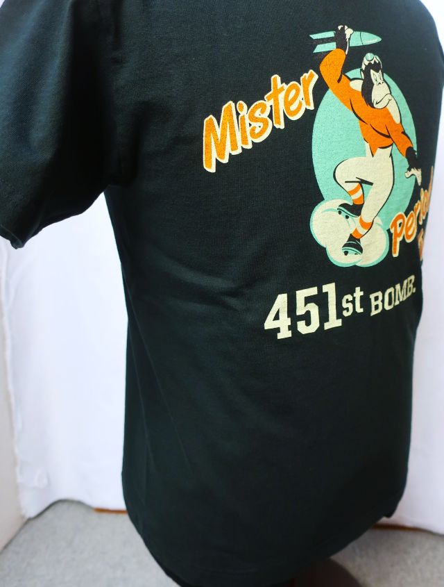 451st BOMB SQ. S/S T-SHIRT フロントとバックの両面にプリントが施された半袖Tシャツです。 【 品番 】 BR79703 【 色 】 ブラック 【 サイズ 】 M / L 【 素材 】 綿 100% 【 本体価格 】 8900円 サイズ目安(cm) ※ 多少誤差あり 【 M 】 肩幅:45 身幅:50 着丈:62 袖丈:19.5 【 L 】 肩幅:46 身幅:51 着丈:67 袖丈:21