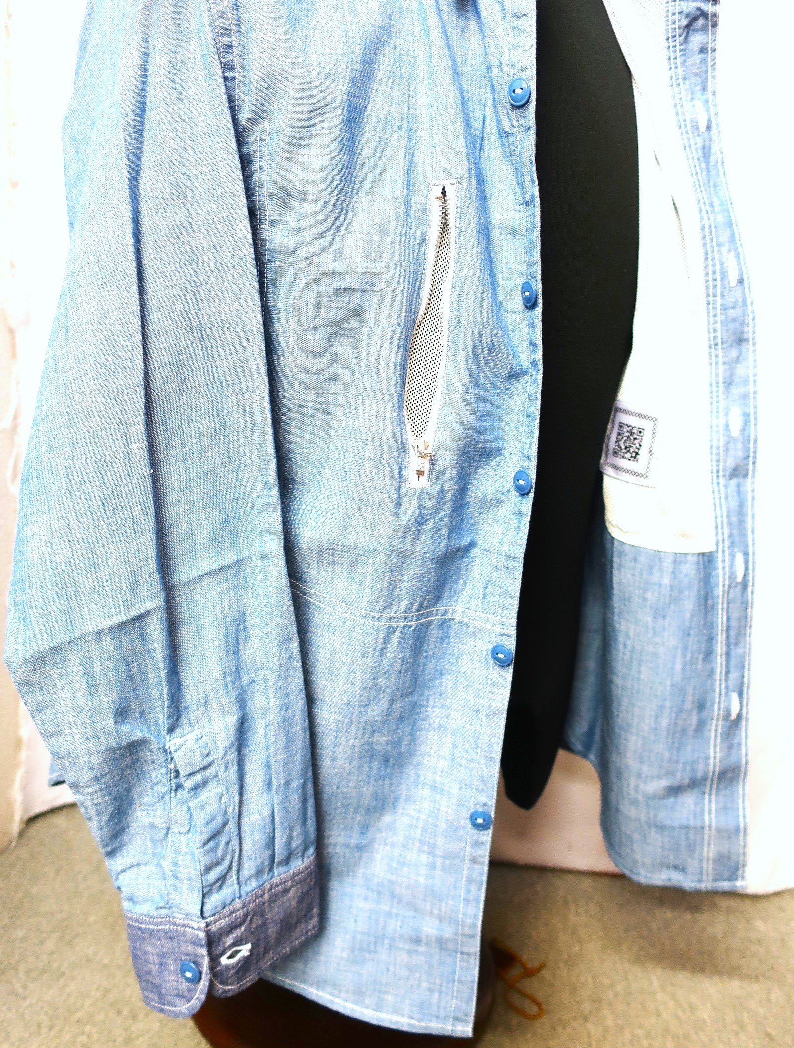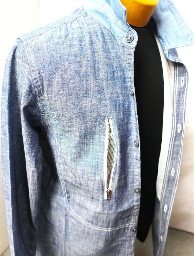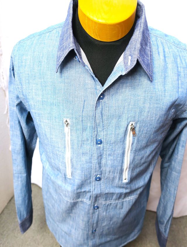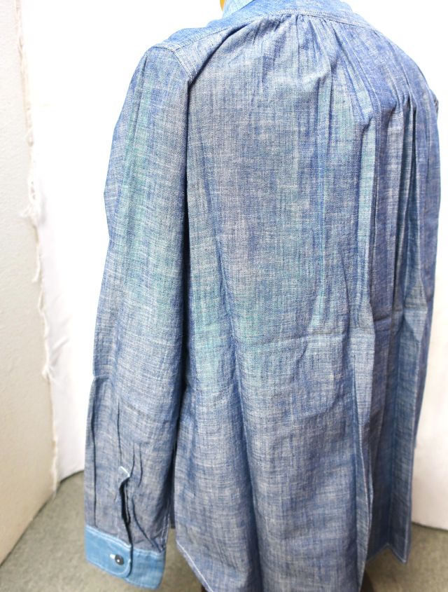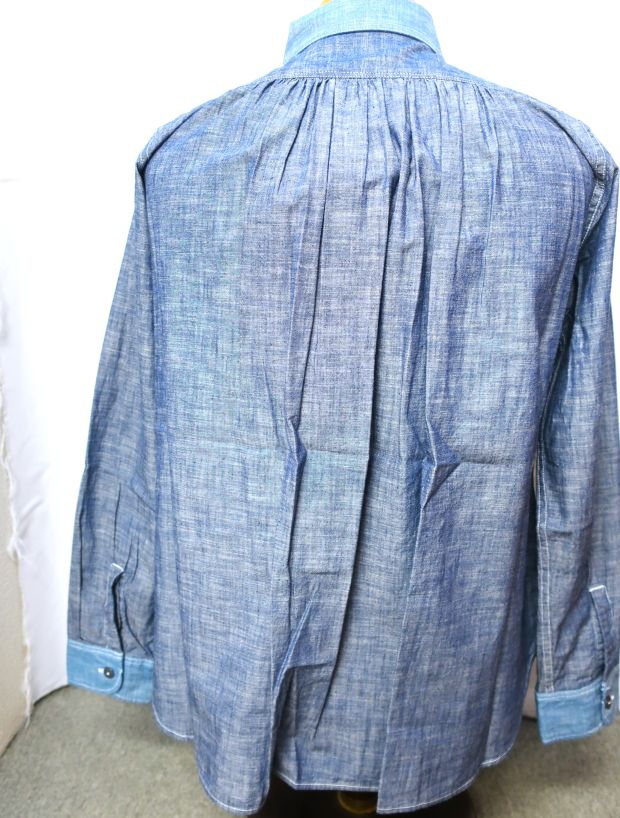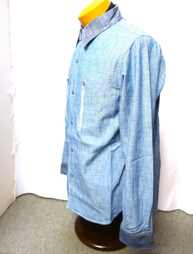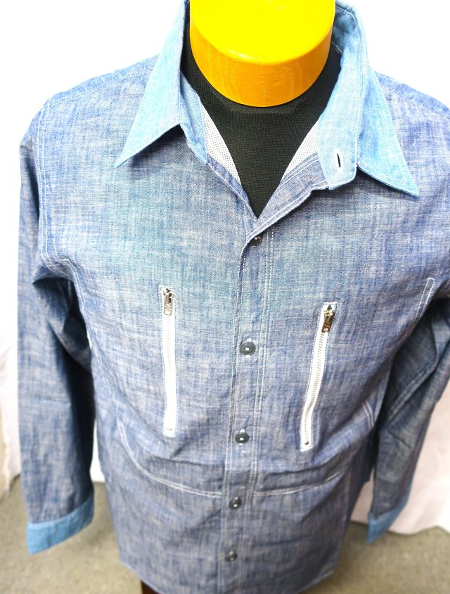 こちらはFULLCOUNTの定番4810 シャンブレーシャツにFUMITO GANRYUが再構築したデザインです。40sのUSN Chambray Shirtをベースに作成しているFULLCOUNTのデザインに2トーン切り替え、胸ポケットにはベンチレーションを携えた機能的なデザインとなっています。