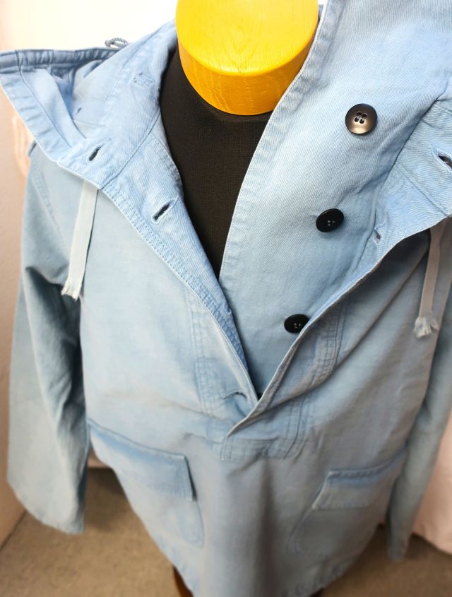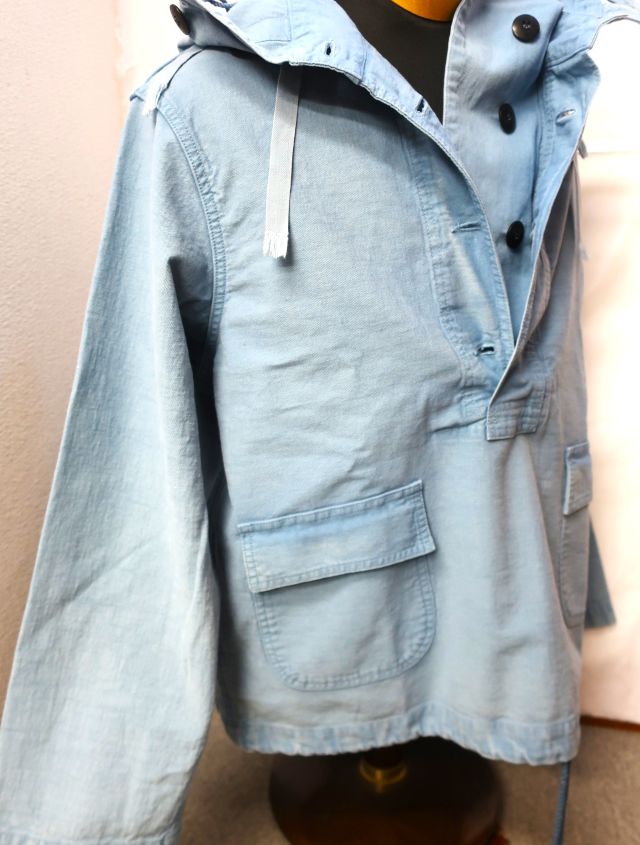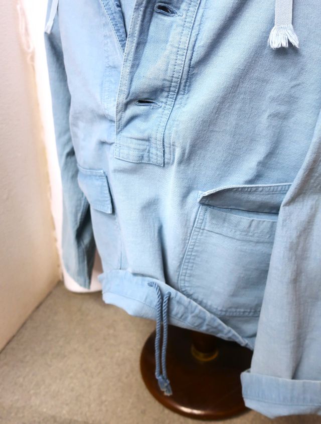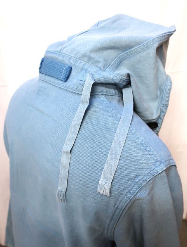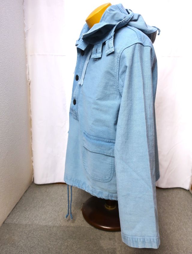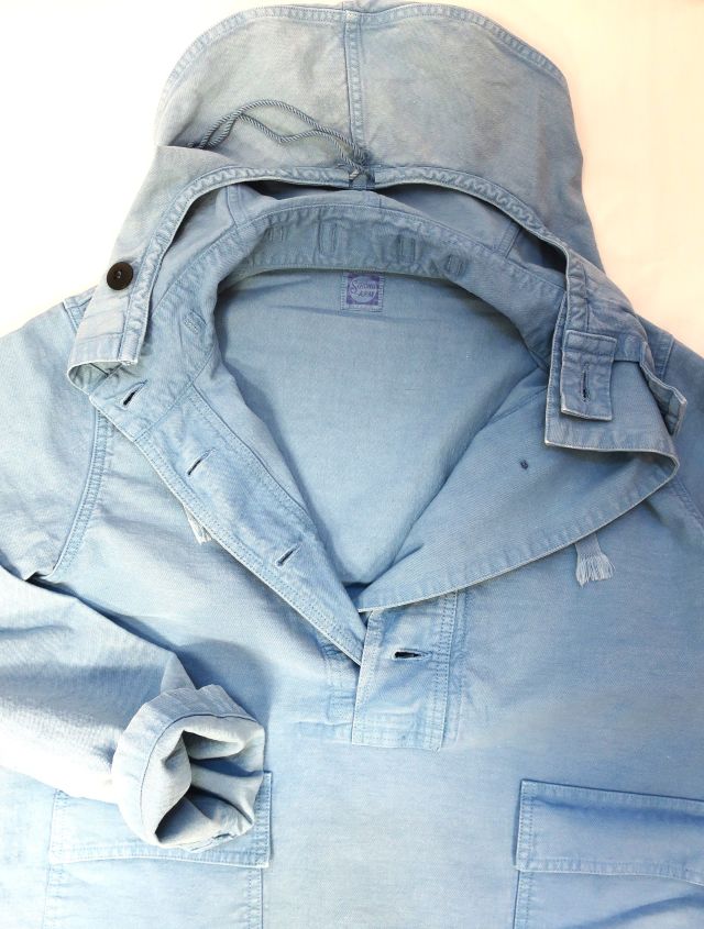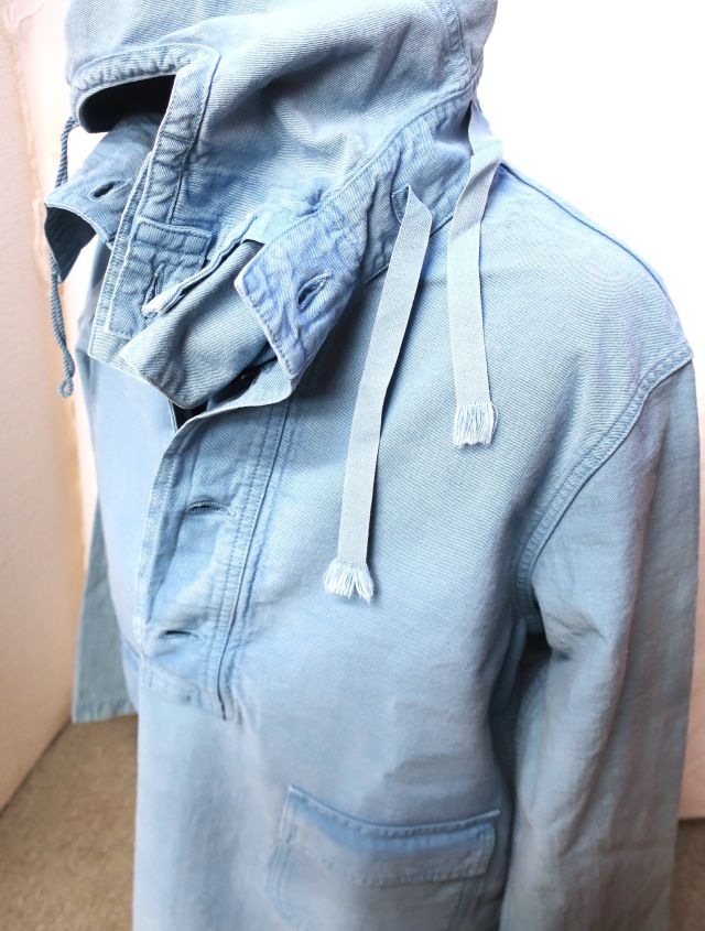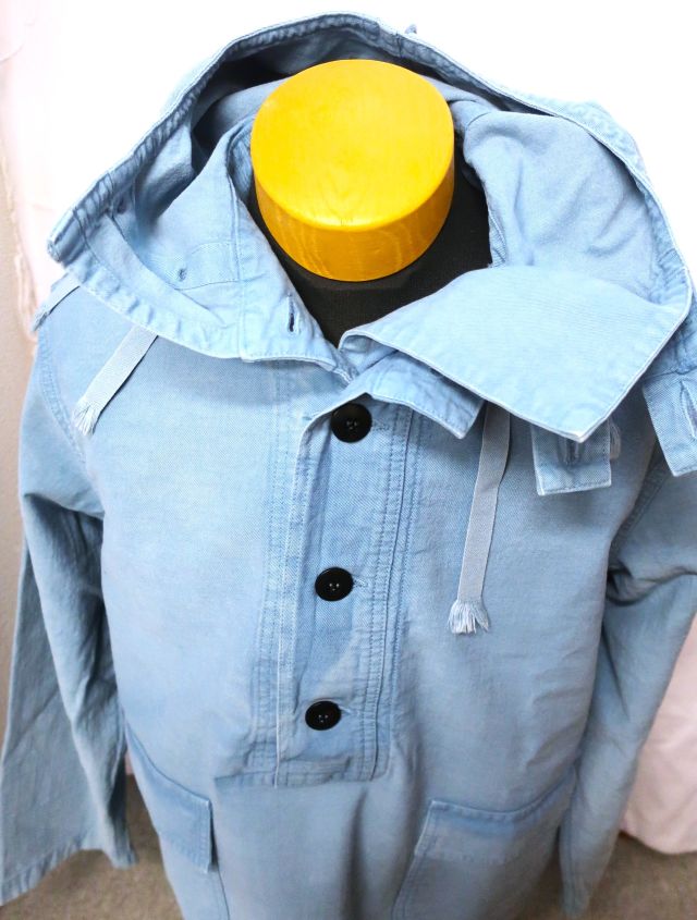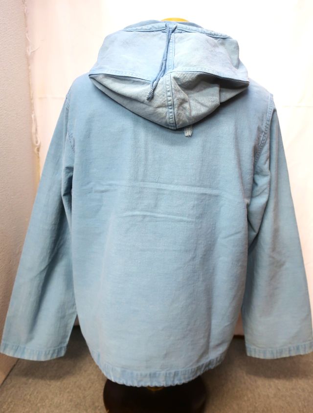 当社のUSNセーラーズパーカーは、海軍の船で特定の清掃やメンテナンス作業を行う際に、制服の上に着るために設計されたUSN除染スーツトップを忠実に再現したものです。これらの衣服は、防水性や耐薬品性のために船上でオーバーダイされることもありました。私のサンプルは、独特な色合いのスカイブルーです。(ジョングラッコー)