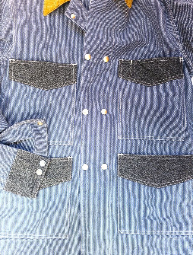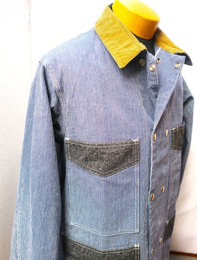 【 特徴 】 スナップタイト・チョア・ジャケットの前身頃の2列のスナップは、風や埃を防ぐためのものです。そして、着る人をシャープに見せてくれます。袖口、襟、ポケットのトリムはコントラストカラーで、目立つこと間違いなしです。ウエアハウスの上質な生地が、この先、長い間美しい状態を見せてくれます。(ジョングラッコー談)