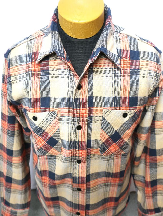 1960~70年代にFIVE BROTHERから展開されていたシャツから起こしたグラデーションチェック。経糸4色x緯糸4色を使い、色あせてくすんだ雰囲気が魅力の色調です。