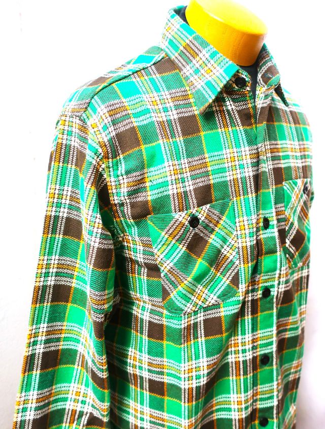 1960~70年代にFIVE BROTHERから展開されていたシャツから起こしたグラデーションチェック。経糸4色x緯糸4色を使い、色あせてくすんだ雰囲気が魅力の色調です。