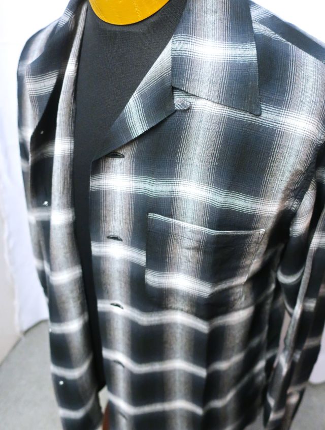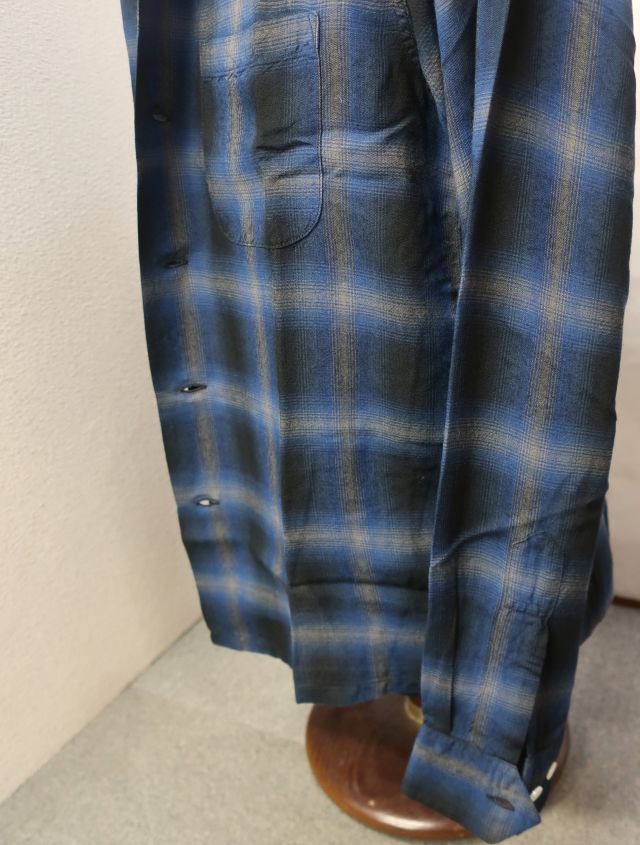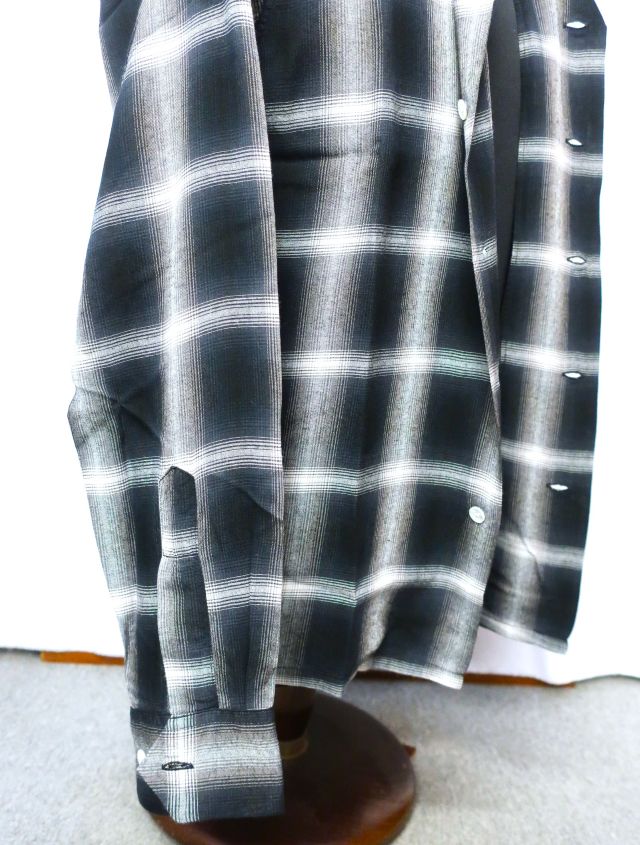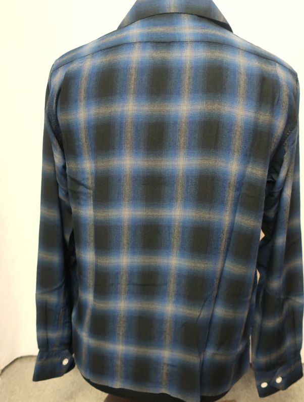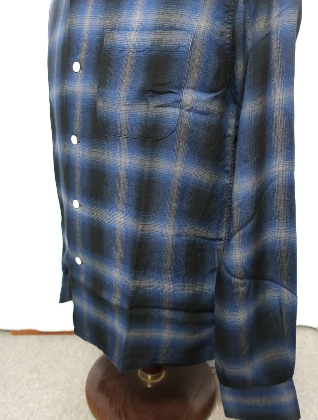 RAYON OMBLE CHECK L/S OPEN SHIRT 【 品番 】 SC29120 【 色 】 ブラック / ネイビー 【 サイズ 】 S / M 【 素材 】 レーヨン 100% 【 本体価格 】 18000円 サイズ目安(cm) ※ 多少誤差あり 【 S 】 肩幅:43.5 身幅:53.5 着丈:66 袖丈:63.5 【 M 】 肩幅:46.5 身幅:57.5 着丈:69.5 袖丈:64