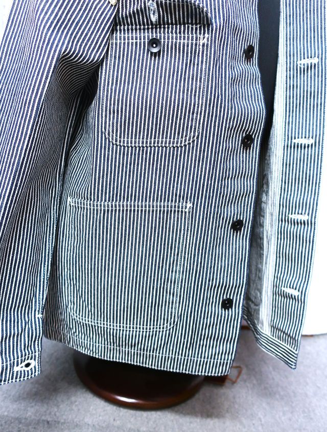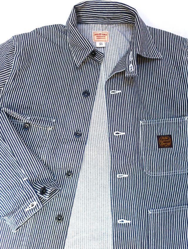 今回が初の展開となるハワイアンワークでのヒッコリーストライプ。その昔、ハワイ島のプランテーション・ワーカーたちの移動手段として、また収穫したパイナップルやサトウキビの運搬用として発展していったハワイ鉄道の一つ、ヒロ・レイルロード・カンパニーの鉄道員たちに支給されていたアイテムを再現している。このワークコートも、ハワイ島の小さな田舎町、ホノカアの近くにあるトレイン・ミュージアムに収められている資料と関係者の方々から集めた情報にハワイアンで使われていたヒッコリー・ストライプのワークウェアを復刻。ハワイの鉄道の歴史の中でも後期の頃にはヒッコリーも多く使われていた。