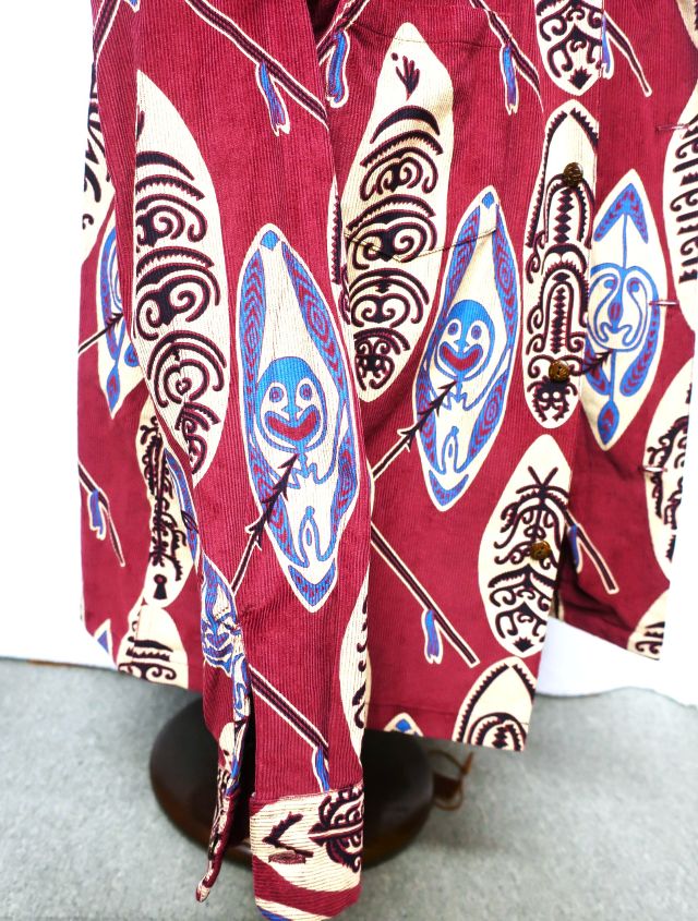 GOD'S SHIELD CORDUROY L/S OPEN SHIRT 【 品番 】 SS29581 【 色 】 ワイン / ブラック 【 サイズ 】 M 【 本体価格 】 18800円 【 素材 】 綿 100% 【 ボタン 】 ココナッツボタン サイズ目安(cm) ※ 多少誤差あり 【 M 】 肩幅:48.5 身幅:56.5 着丈:68 袖丈:61.5