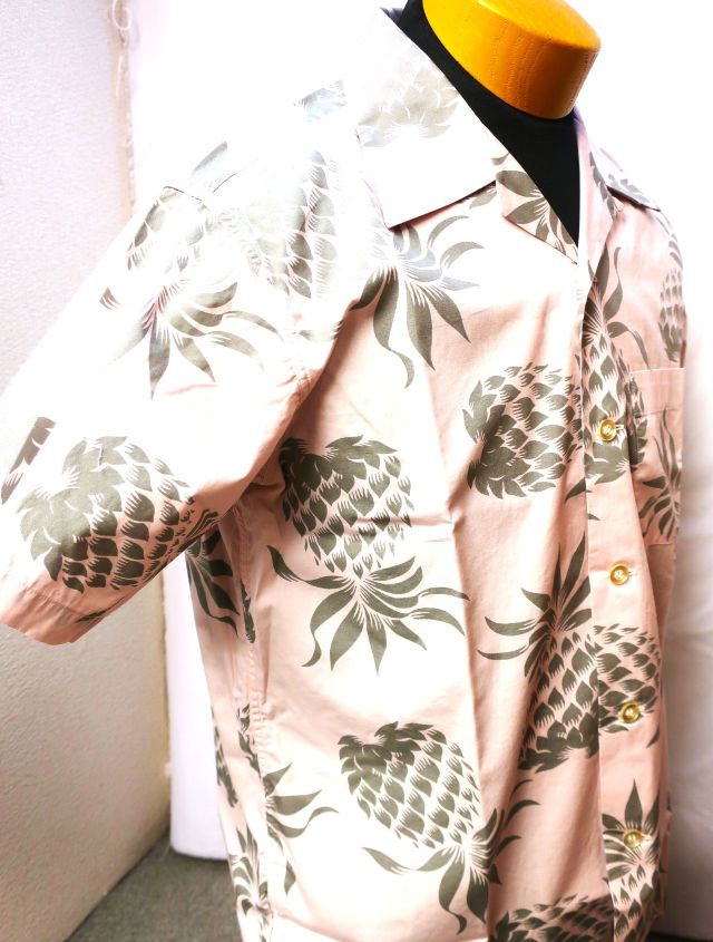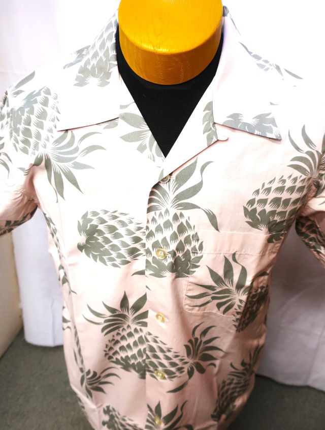 【 特徴 】1950年代に作られたデューク・カハナモクのヴィンテージアロハシャツのなかでも代表的なデザインである「デュークス・パイナップル」をコットン素材で復刻。プリントの手法に抜染プリントを採用するなどヴィンテージさながらのディテールだが、コットン製のためレーヨンよりも取り扱いが容易で、シルエットには改良を加え着用しやすいサイズ感としている。今季は新色としてピンクをリリース。