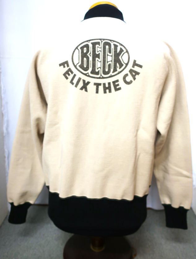 米陸軍航空隊が採用したウール製のC-2 VESTをよりカジュアルに着用できる、ヘヴィーウェイトのスウェット生地でアップデート。ヴィンテージのタグをFELIX THE CAT仕様にアレンジした刺繍パッチを胸に、BECKのロゴプリントを背中に配し、ヘヴィーアウターのインナーとして、またミッドアウターとして活躍する。