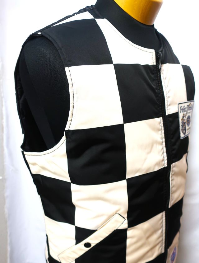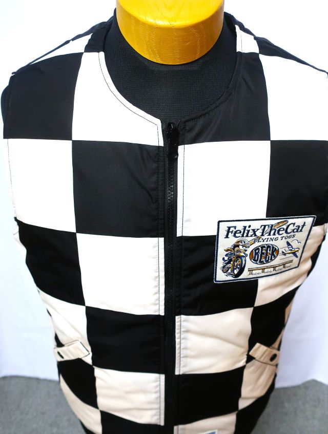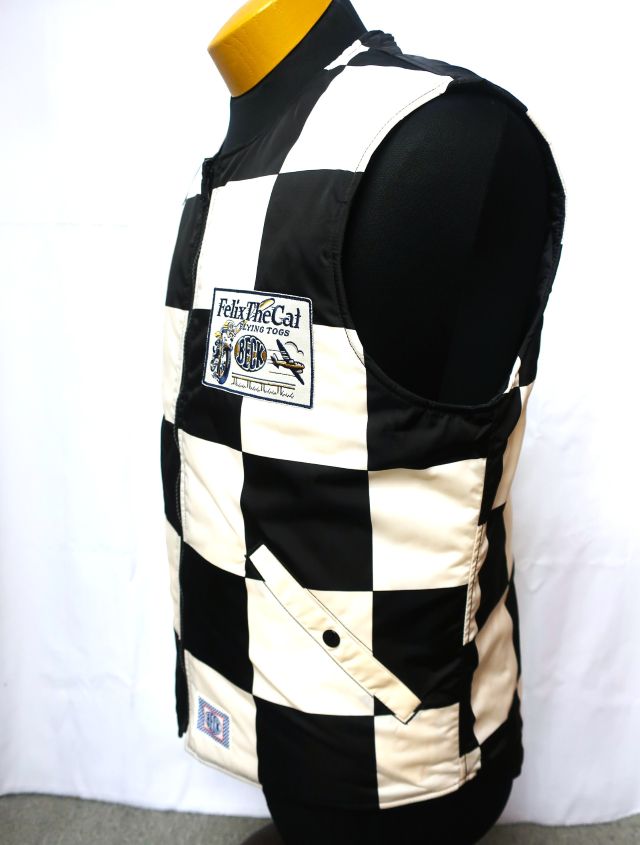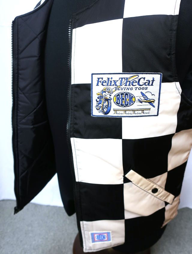 ライニングにシンサレートを装備したリバーシブル仕様。ブラック x ホワイトのチェッカーフラッグパターンに乗せた刺繍パッチは、ヴィンテージのタグをベースに、FELIX THE CATを取り入れたオリジナルデザインを採用している。
