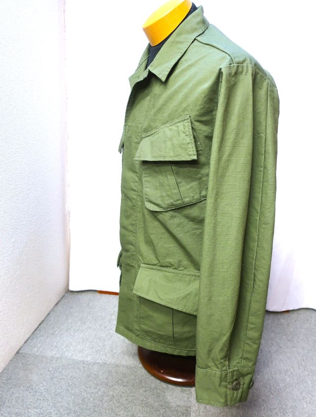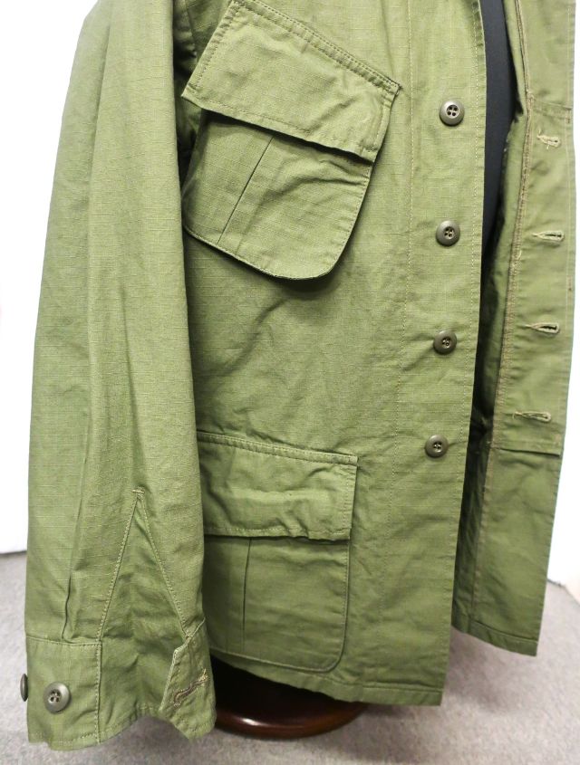 【 特徴 】 熱帯地域での任務に適した、速乾性の高いコットンポプリンを採用し、'60年代初期に支給が始まったジャングルファティーグ。剥き出しのボタンから隠しボタンへの変更やエポレット・サイドストラップの廃止、そしてリップストップポプリンへの素材変更などを加えた第4期モデルを忠実に復刻しました。