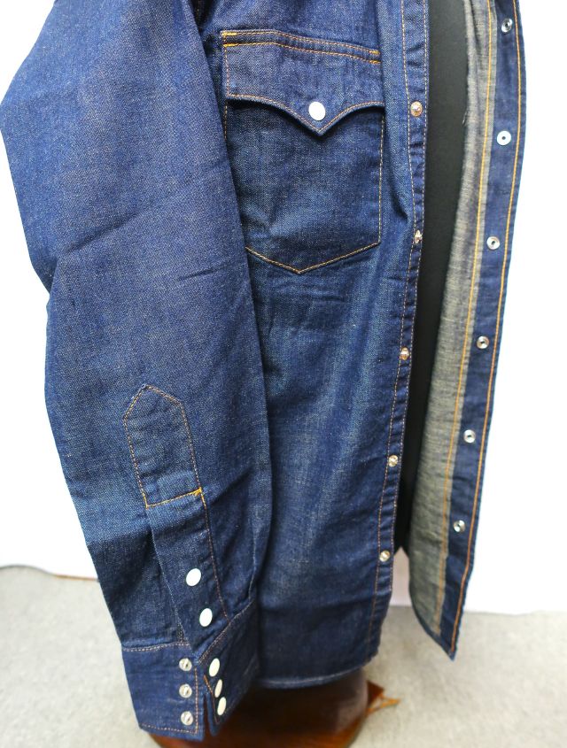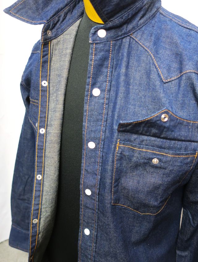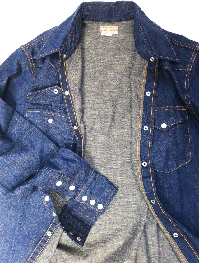 広大な西部を舞台に男の復讐劇を描いた映画『ネバダスミス』で、マックィーンが纏ったウエスタンシャツを再現する。トイズマッコイでは過去にフェイド加工を施した同シャツをリリースしたが、今回は濃紺デニムでアップデート。5つボタンのカフスや、背中のアンブレラヨークなど本品の特徴を再現しつつ、デニムの色落ちを育てて、自分だけのフェイドを楽しめる一着だ。