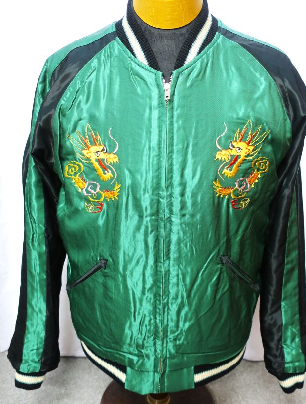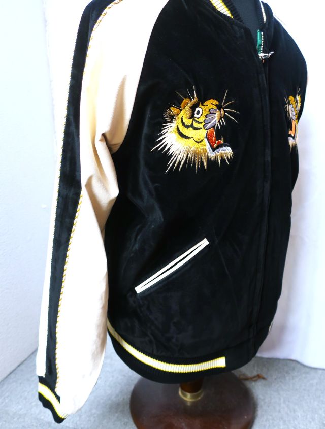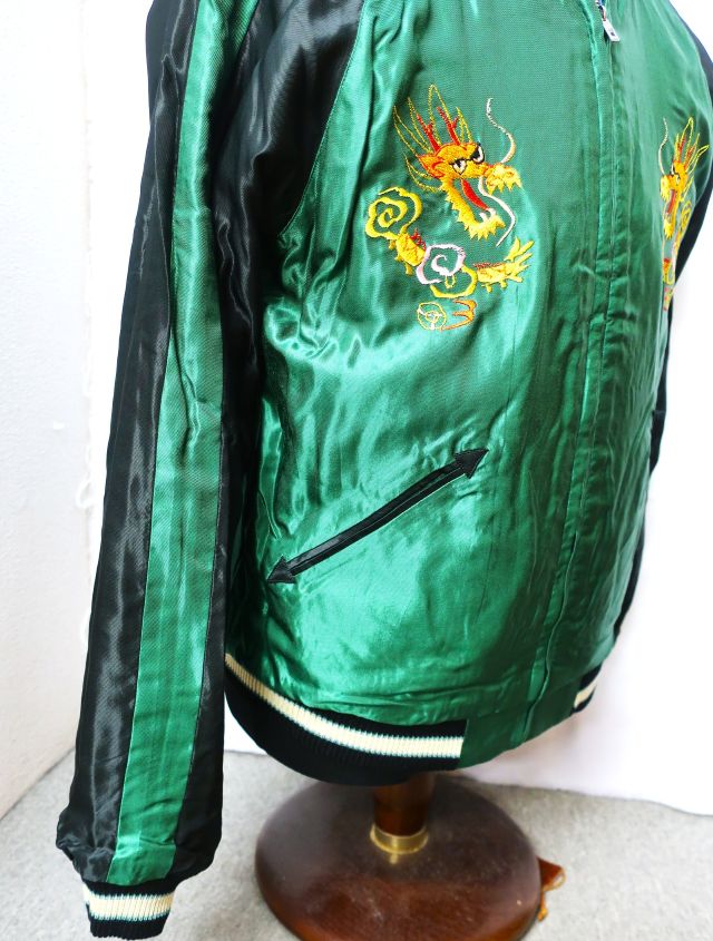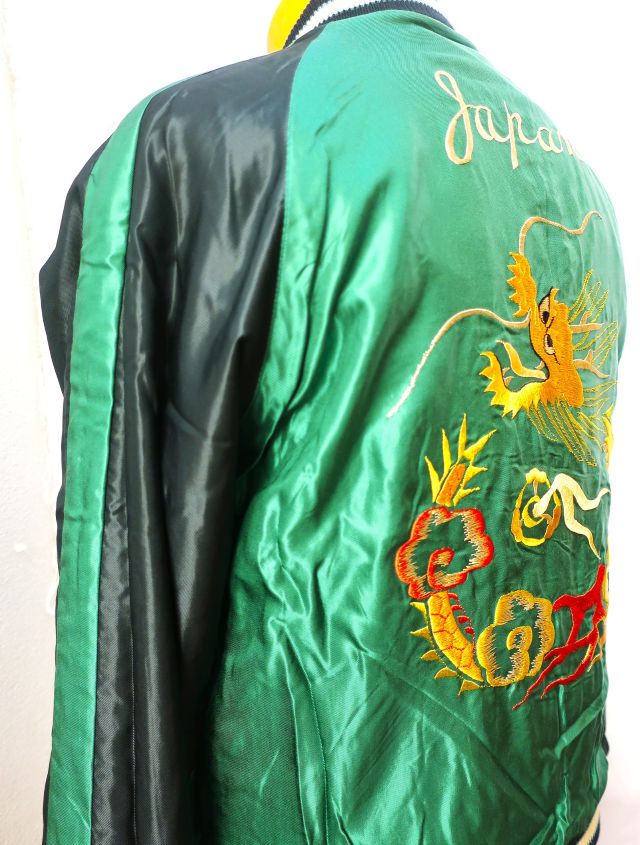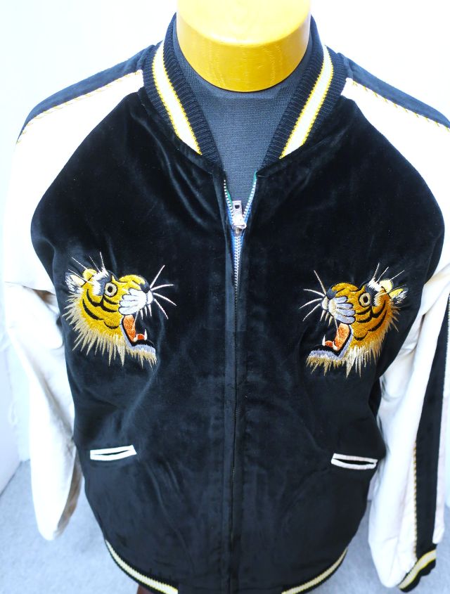 リバーシブルの別珍 x アセテートレーヨン スカジャンです。