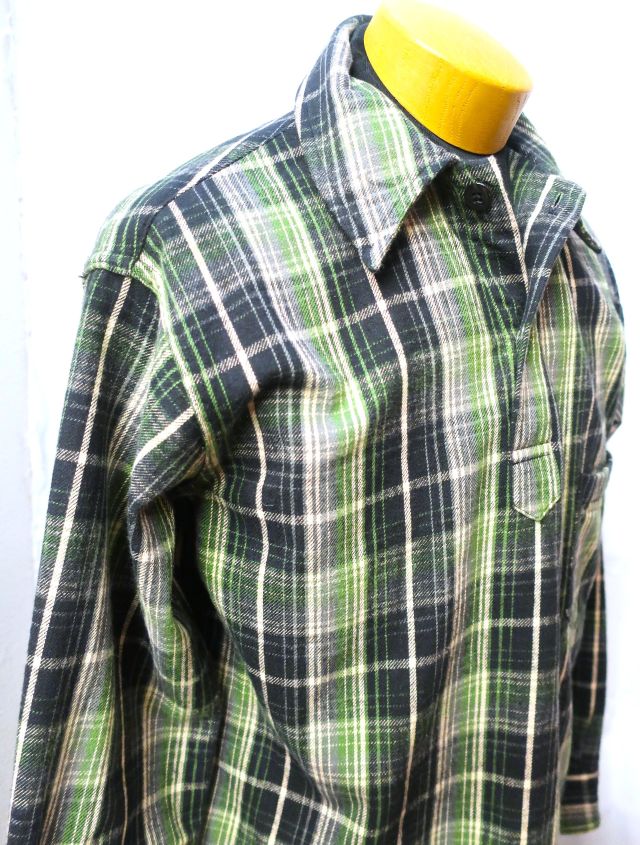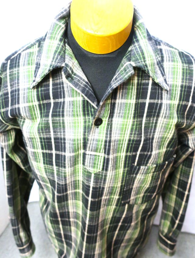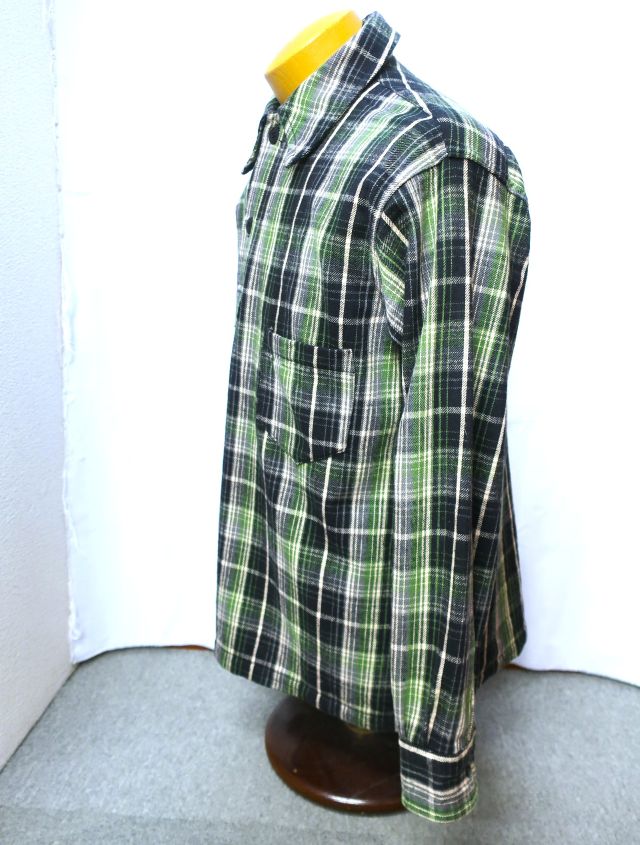 1930'S WPA ONE POCKET PULLOVER SHIRTS 【 品番 】 3063 【 色 】 ネル ( チェック ) : グリーン 【 サイズ 】 38 【 素材 】 綿 100% 【 本体価格 】 27000円 【 特徴 】 サイズ目安(cm) ※ 多少誤差あり 【 M 】 肩幅:49 身幅:57 着丈:70 袖丈:59.5