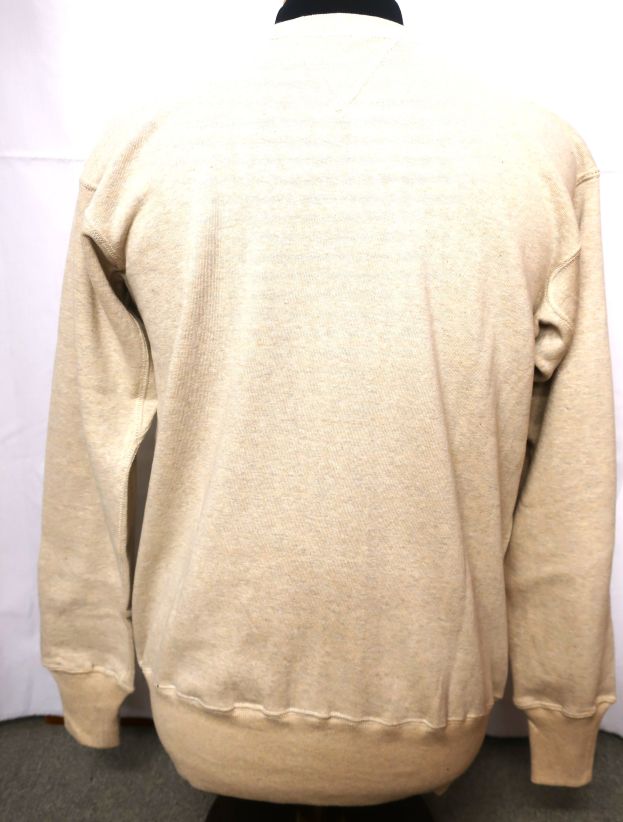 25年以上仕様を変更していない、定番のセットインフリーダムの吊り編みスウェットです。2本ステッチの間から粗めのロック糸が見える仕様=ヴィンテージならではのディテールも、ミシンを改良することで実現。かつてコットンフリースラインドと呼ばれた裏起毛も、筒状のまま起毛をかけて再現しています。