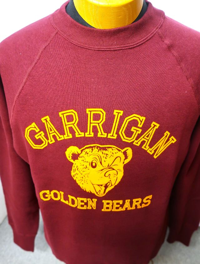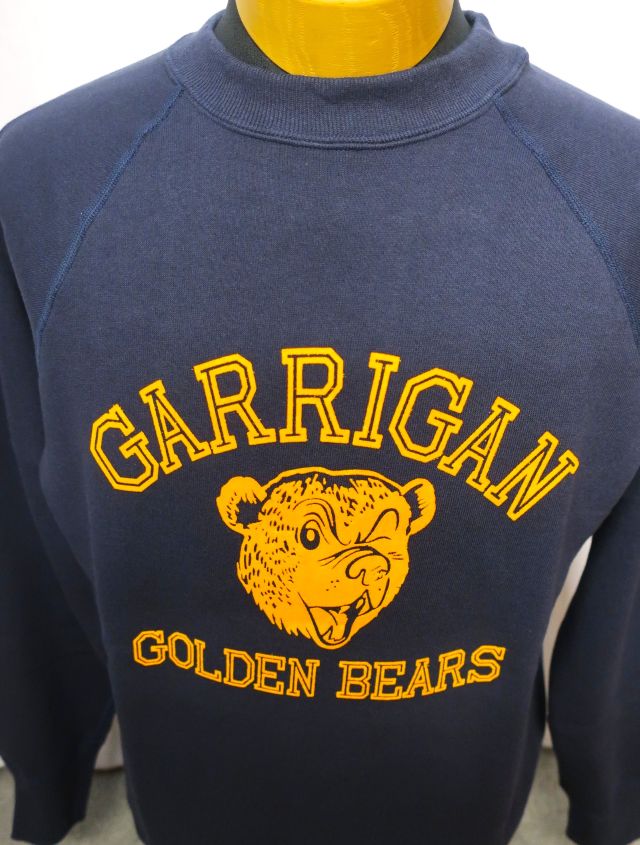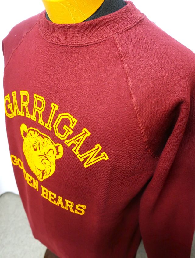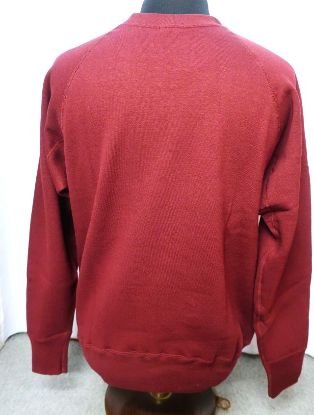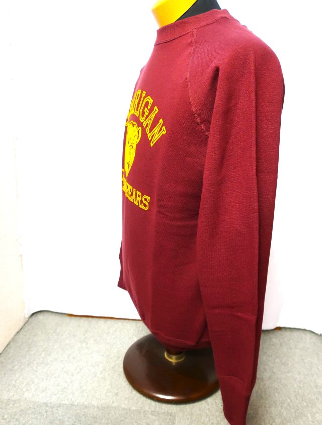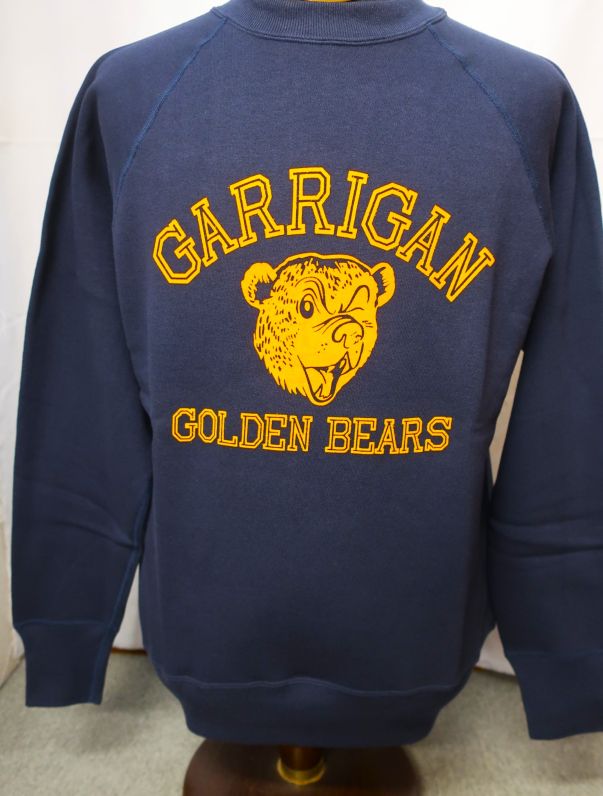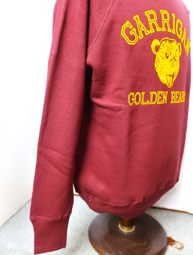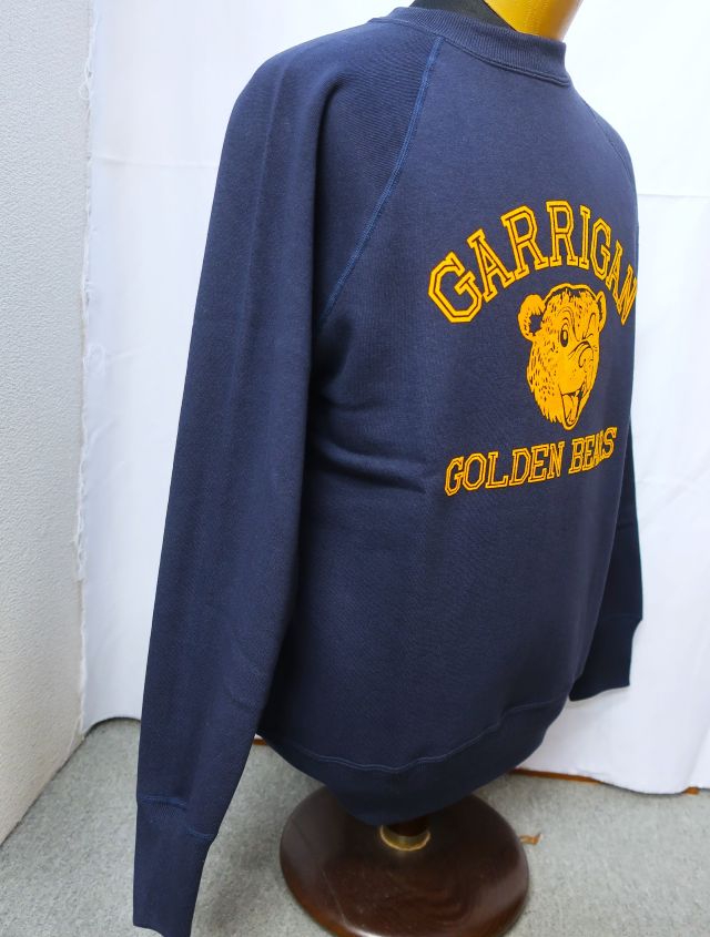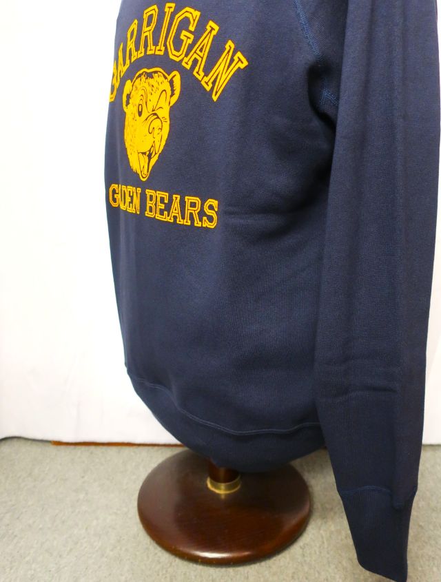 大学や高校が共有するスポーツチームのオリジナルキャラクターをフロッキーに着色してカラフルに描いたカラーフロッキーシリーズ。ウエアハウスとしては10数年ぶりの登場となります。ウエアハウスではラグランスウェットのボディーに、これらの新品の状態を再現し、着用と洗濯でヴィンテージのような褪色を楽しんでいただけるカラーフロッキースウェットを製作しました。