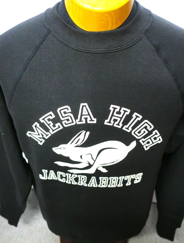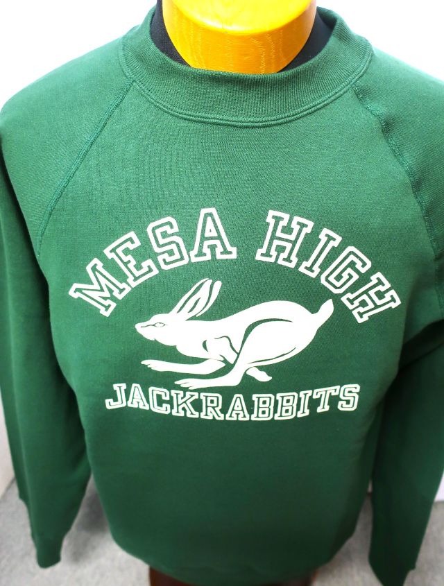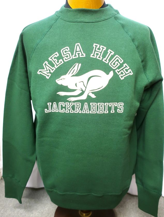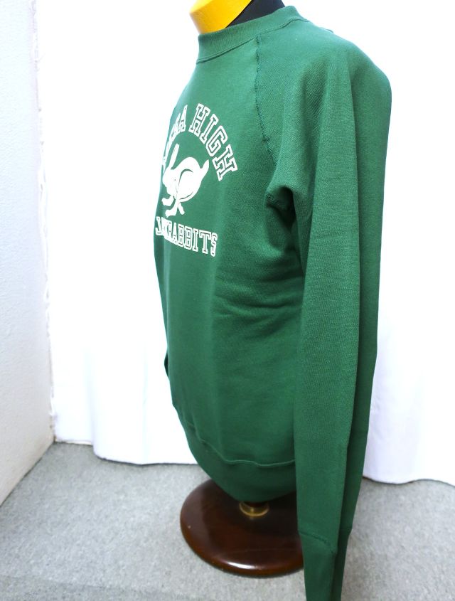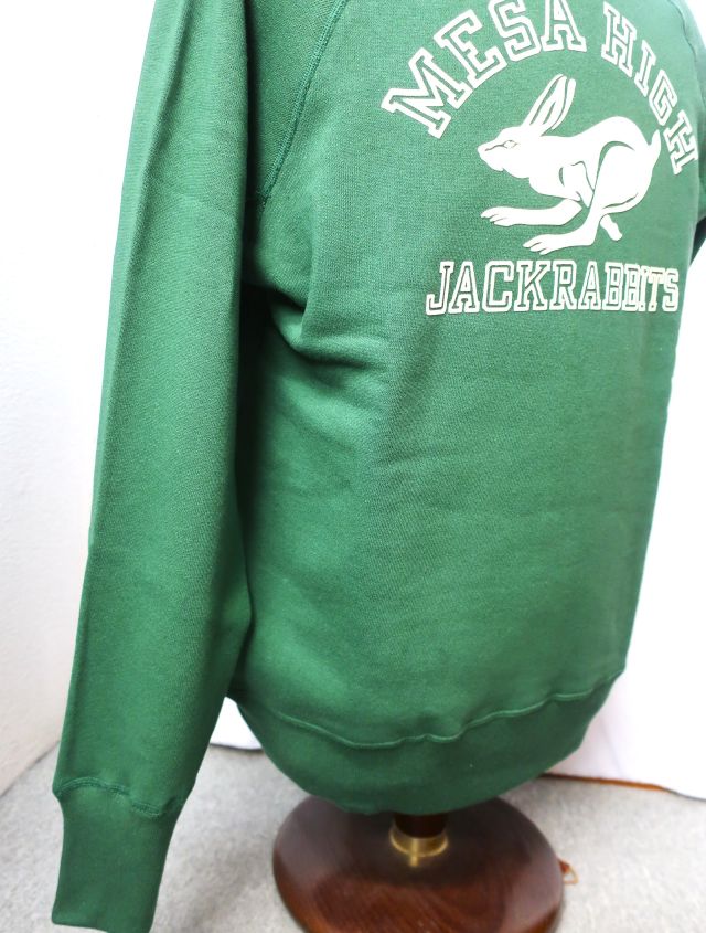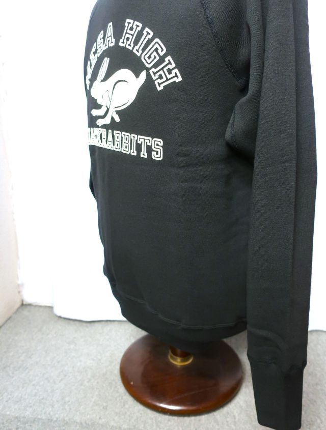大学や高校が共有するスポーツチームのオリジナルキャラクターをフロッキーに着色してカラフルに描いたカラーフロッキーシリーズ。ウエアハウスとしては10数年ぶりの登場となります。ウエアハウスではラグランスウェットのボディーに、これらの新品の状態を再現し、着用と洗濯でヴィンテージのような褪色を楽しんでいただけるカラーフロッキースウェットを製作しました。