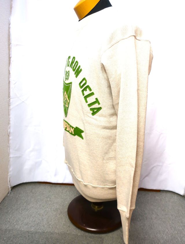 25年以上仕様を変更していない、定番のセットインフリーダムの吊り編みスウェットです。2本ステッチの間から粗めのロック糸が見える仕様=ヴィンテージならではのディテールも、ミシンを改良することで実現。かつてコットンフリースラインドと呼ばれた裏起毛も、筒状のまま起毛をかけて再現しています。