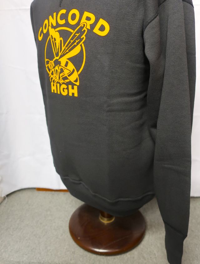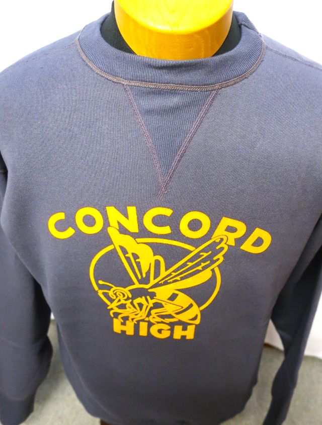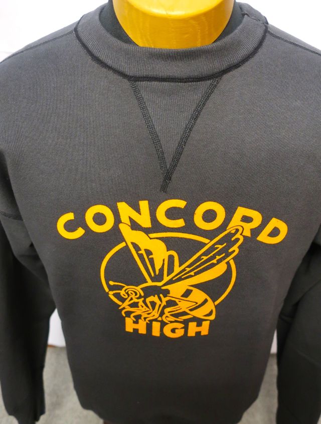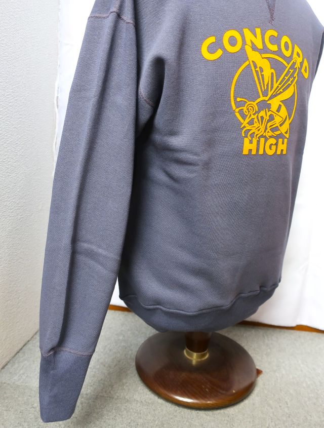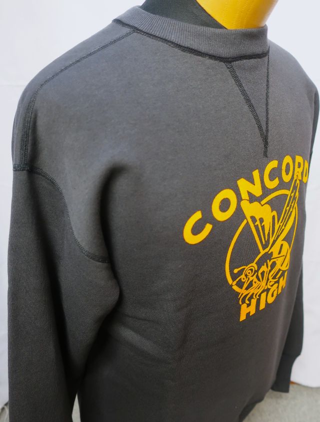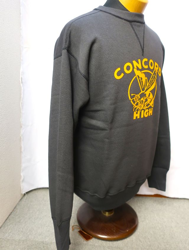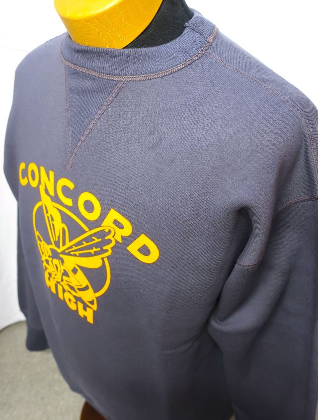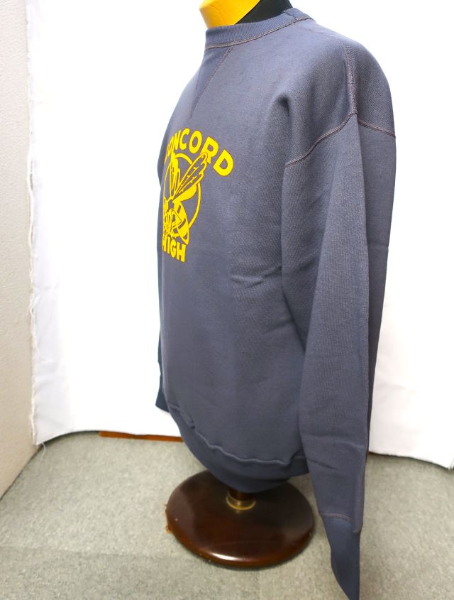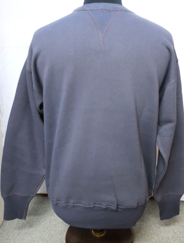 カットソーがウールからコットンに変わった1930年代からある挟み込み仕様の腰リブ。首回りには伸縮に富むV字のフライスを前後に配した四本針仕様のスウェットです。肩口から垂直に落ちる袖口のセットインスリーヴはややソリッドな印象を受けるシンプルなデザインですが、腰帯のバインダー仕様は着こむほどにアタリが生まれます。