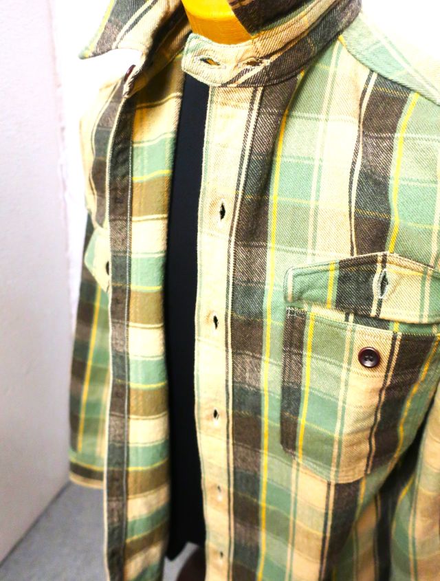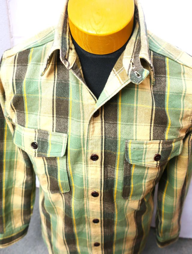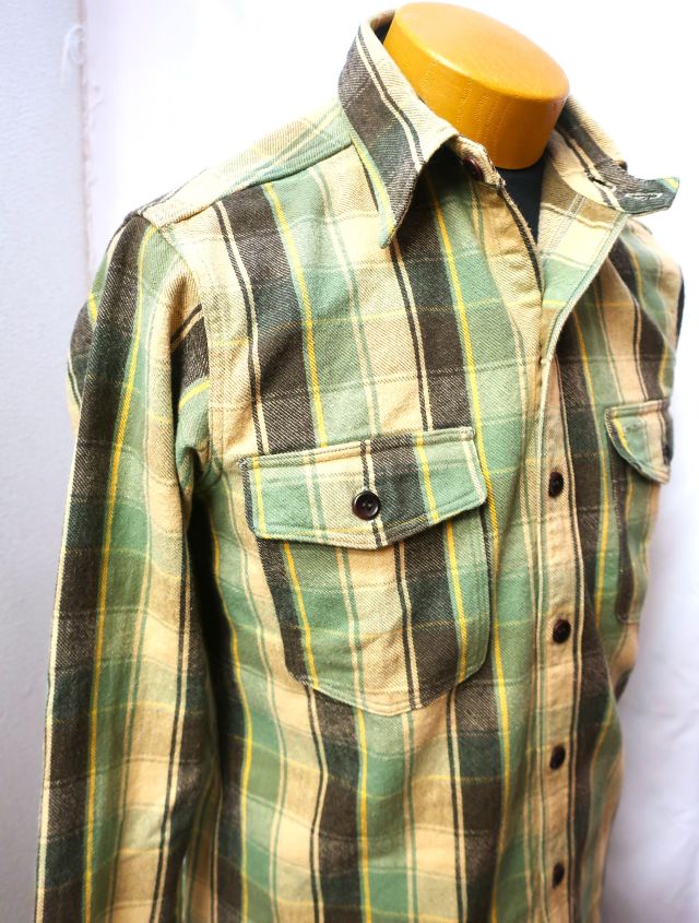 1930~40年代に「 BRAVEMAN 」というシャツメーカーのセールスマンが使用していた生地見本帳をもとに、実際に使われていたチェック柄のコットンフランネル生地を再現。生地だけでなく、チンストラップの付くシャツの細かな仕様まで当時のモデルに忠実なウエアハウスの定番シリーズです。
