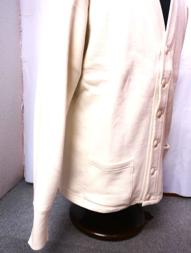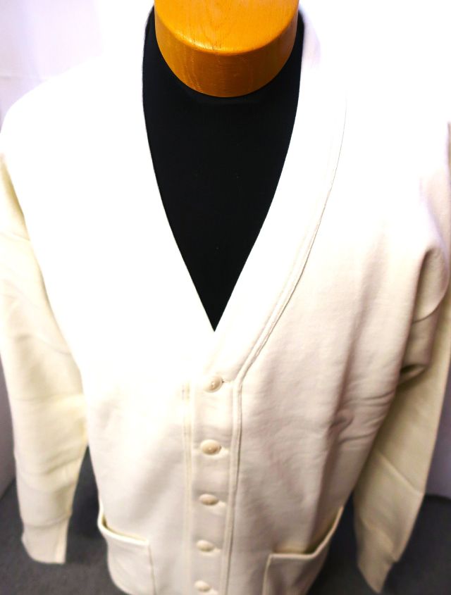 4本針 スウェットカーディガン 【 品番 】 498 【 色 】 ベージュ / 杢グレー / ダークネイビー 【 サイズ 】 40 【 素材 】 綿 100% 【 本体価格 】 22000円 【 特徴 】 ・オリジナル ナットボタン ・洗濯後少し縮みます。 サイズ目安(cm) ※ 多少誤差あり 【 40 】 肩幅:55.5 身幅:59.5 着丈:68 袖丈:65